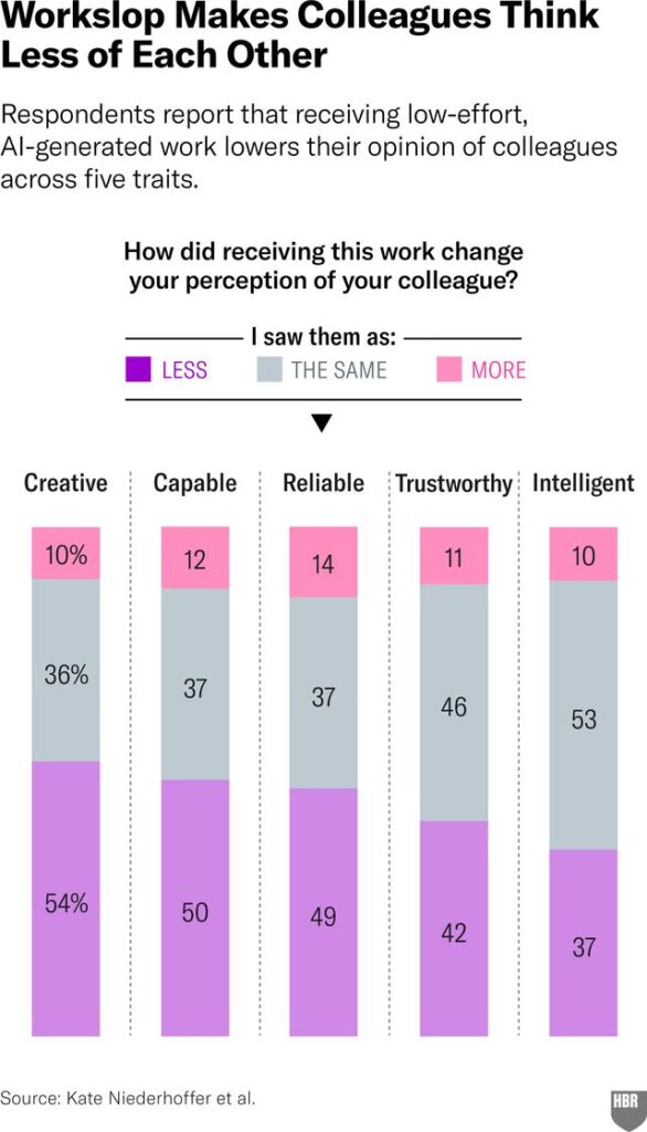 Harvard Business Review bracht deze inzichten recent samen in een artikel van Kate Niederhoffer, Gabriella Rosen Kellerman en collega’s, waarin ze aantonen hoe “workslop” zich razendsnel verspreidt binnen bedrijven.